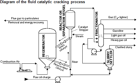 Most catalytic cracking is fluid catalytic cracking, which uses a sand-like catalyst that behaves as a fluid when mixed with the heavy fractions. Different companies have developed different fluid catalytic cracking processes, and different refineries might use multiple catalytic crackers in different parts of the process.