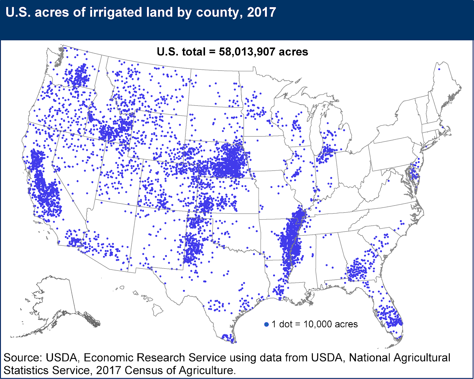 And this map shows a more granular view of where, specifically, irrigated acres are located.