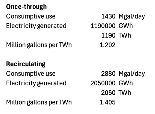 But I didn’t read the report closely enough, and apparently this 579 million gallons a day was in fact consumptive use. This would increase the total consumptive water use of data centers from 66 million to 628 million, a huge difference.