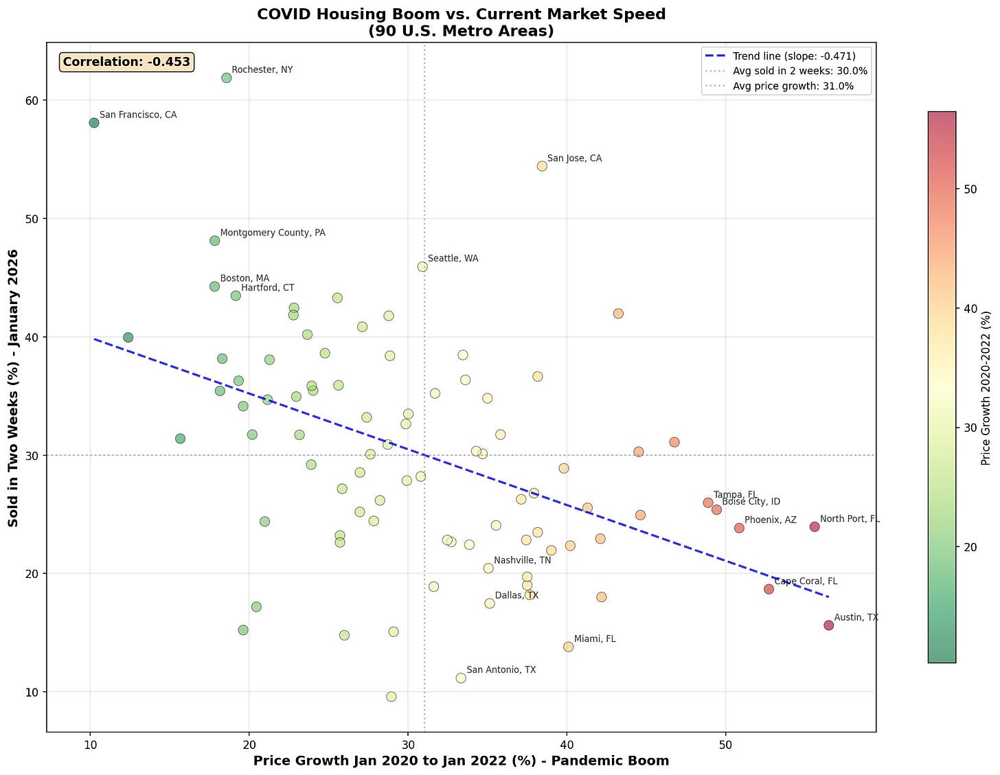 Also, the places with the biggest COVID housing price booms are now the places where it’s the hardest to sell your house. [X]