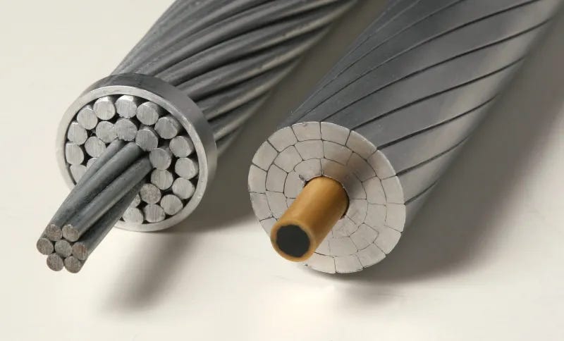 Another way to increase the capacity in advanced conductors is by switching to trapezoidal wires. Traditional ACSR with round wires in the core and conductor layers has a significant amount of dielectric space trapped within the conductor, which contributes nothing to the cable’s current-carrying capacity. Filling those internal voids with aluminum is accomplished by wrapping round composite cores with aluminum wires that have a trapezoidal cross-section to pack tightly against each other. This greatly reduces the dielectric space trapped within a conductor, increasing its ampacity within the same overall diameter.