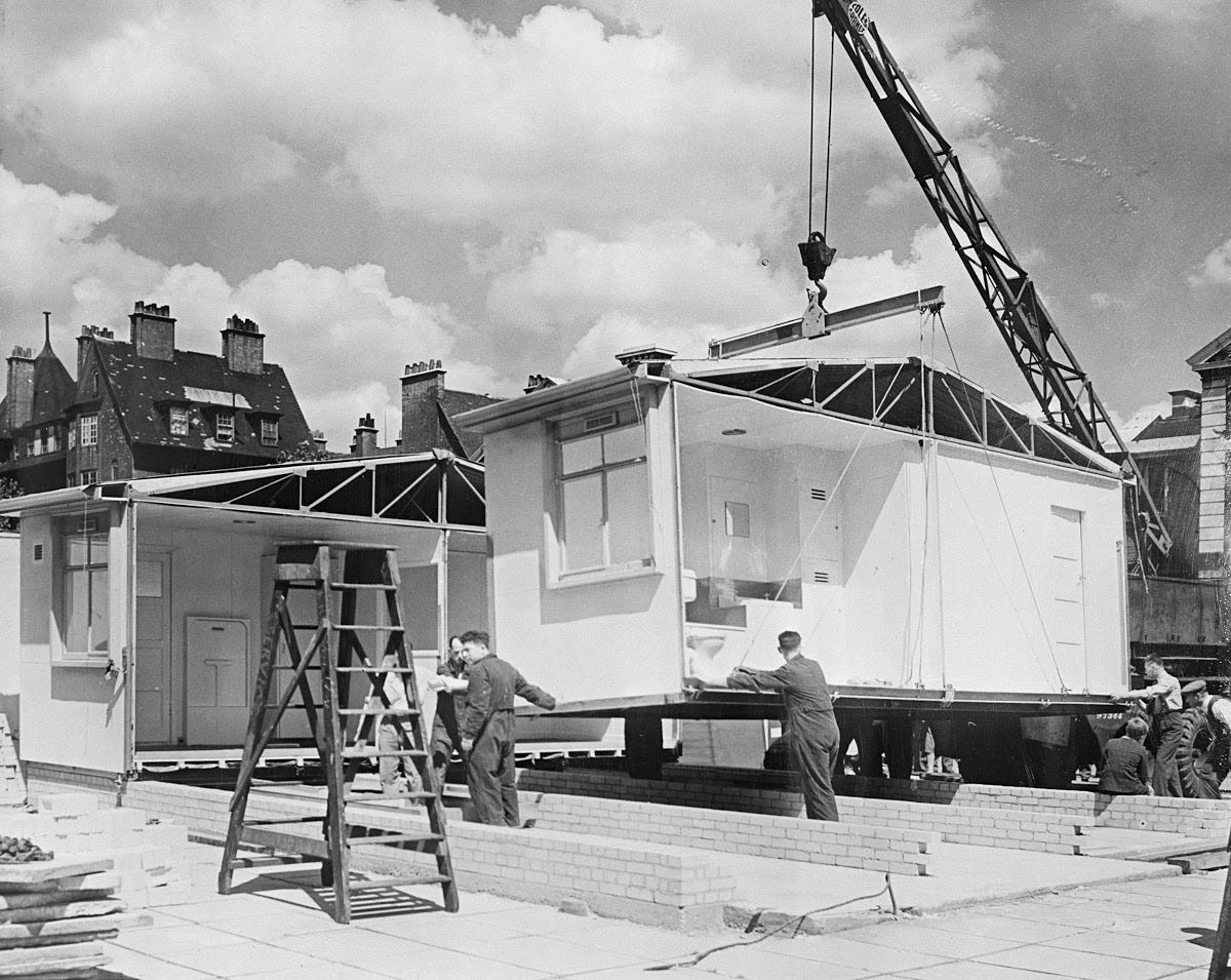 Prefabricated home construction has a similarly long history of use outside the US. In the UK, following WWII the government funded the construction of over 150,000 prefabricated homes as part of its “Emergency Factory Made” housing program. The most notable of these was the AIROH house, which was designed to make use of now-surplus aircraft manufacturing plants and the 100,000 tons of scrap aluminum that no longer needed to be turned into airplanes. Over 54,000 aluminum-framed AIROH houses were produced during the program, each one using two tons of scrap aluminum.