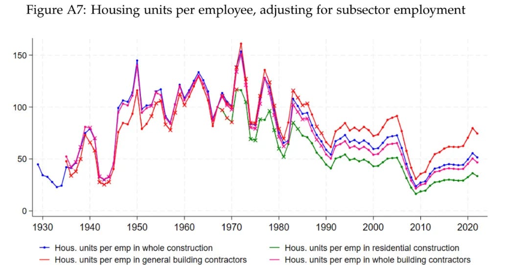 Slightly more granular are metrics that look at productivity changes in a particular subsector, such as housing construction.